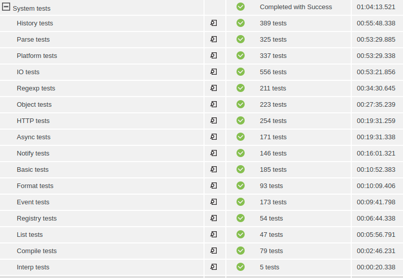 After adopting parallel execution throughout the ZipGit CI process I noticed a set of steps that was an ideal candidate for schedule optimization: the system tests. Running these 16 independent test steps in parallel on a pool of 6 resources already reduced the duration more than 4x, from over 6 hours to 1½ hours: