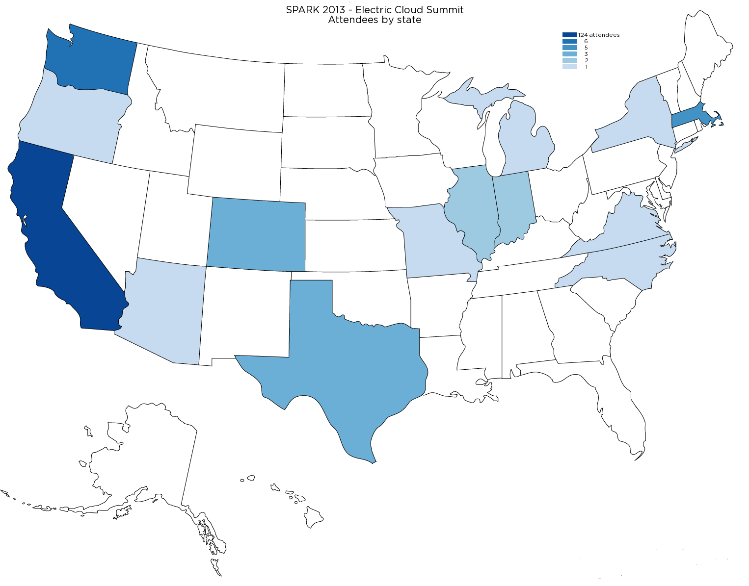 Each year since its inception, the summit has set a new record for total registrations, and SPARK 2013 was no exception with 186 people signed up. But even more impressive is the record 168 attendees — those people that actually made it to the conference. That beats the previous high of 146 from 2011 and is a massive 33% increase from the 126 attendees in 2012: