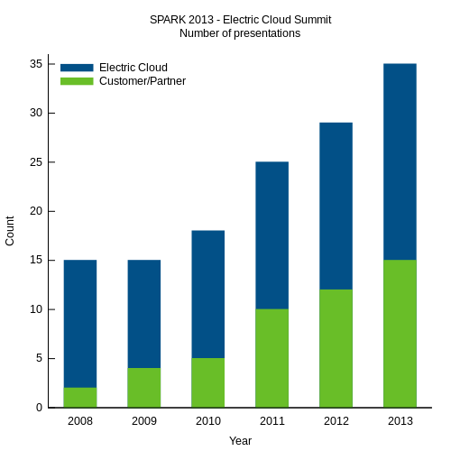 SPARK 2013 had about 20% more sessions than 2012, and again more of the content came from users and partners than in any previous year. Sadly I didn’t get a chance to see too many of the presentations since I was a presenter myself, but I did get to watch the keynotes at least. If you didn’t watch the SPARK 2013 keynotes yet, you really should. It’s OK, I’ll wait.